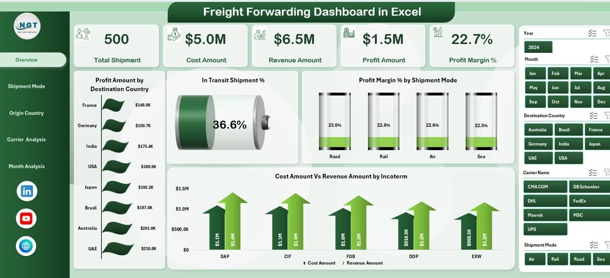 A Freight Forwarding Dashboard in Excel offers a practical, powerful, and cost-effective way to analyze logistics performance. It brings clarity to complex freight data and supports better decisions across shipment modes, carriers, origins, and time periods.