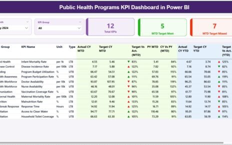 • Dynamic Display: Features MTD and YTD data, showcasing Actual vs. Target and Previous Year comparisons using intuitive conditional formatting with directional arrows.
