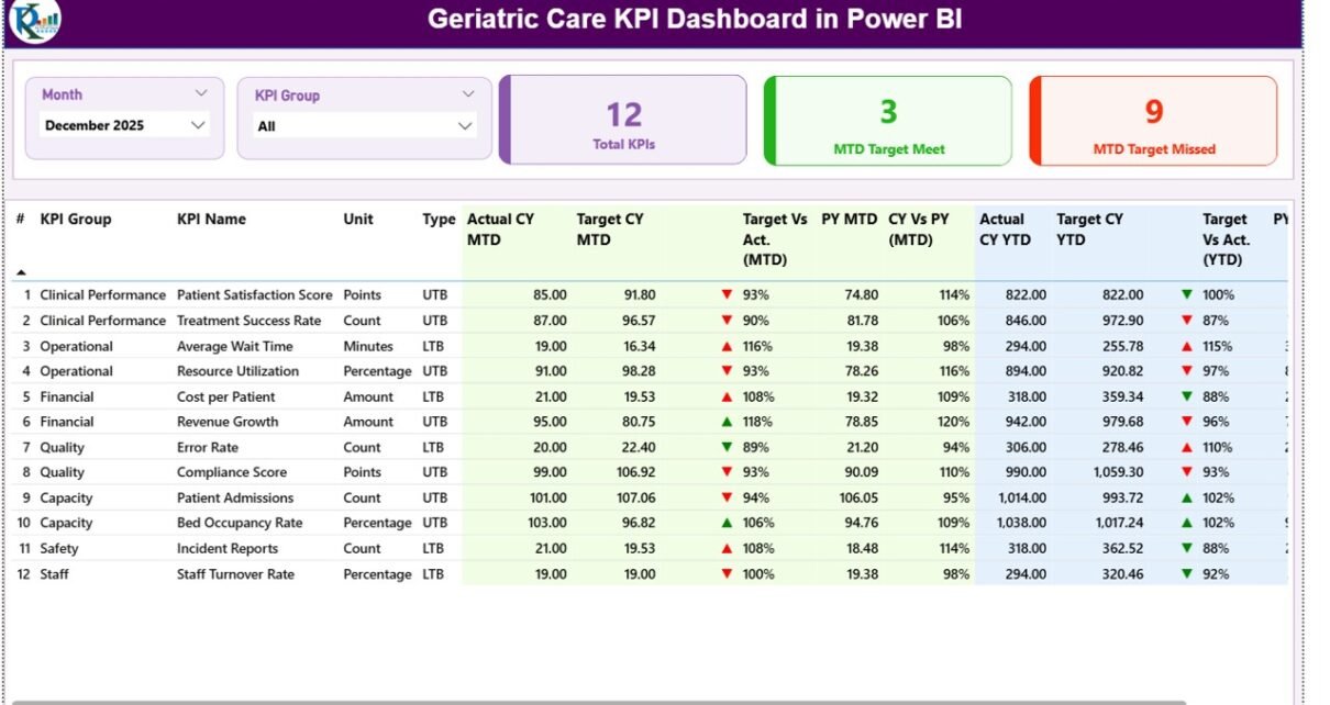 Advantages of Geriatric Care KPI Dashboard in Power BI