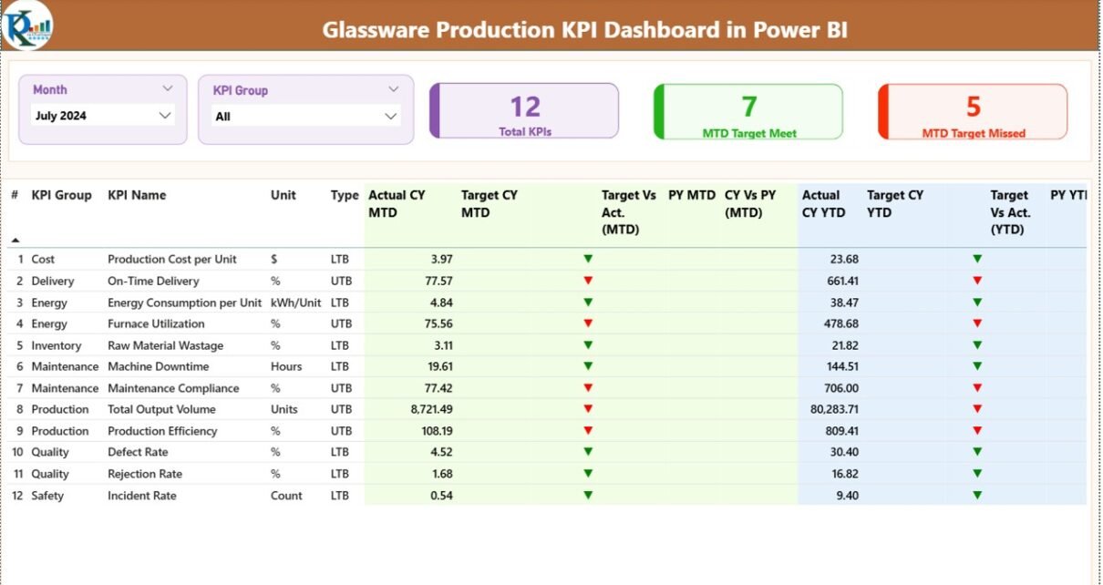 What Is a Glassware Production KPI Dashboard in Power BI?