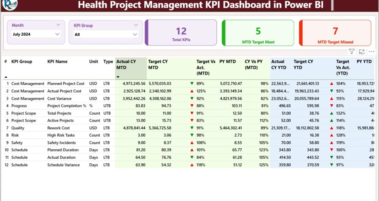 What Is a Health Project Management KPI Dashboard in Power BI?