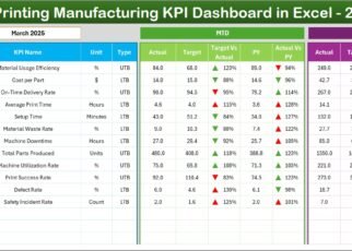 The Heavy Vehicle Assembly KPI Dashboard in Excel provides a structured, practical, and powerful solution for monitoring manufacturing performance. By combining KPI tracking, trend analysis, and automated comparisons, the dashboard enables organizations to improve operational visibility and decision-making.