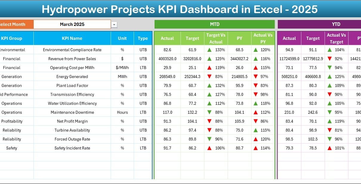 The Hydropower Projects KPI Dashboard in Excel provides a practical and powerful solution by combining operational data, targets, historical comparison, and visual analytics into one centralized system.