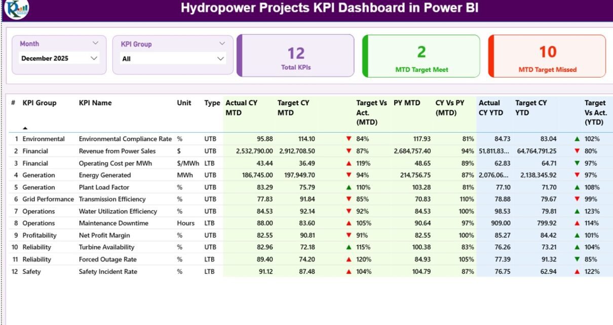 A Hydropower Projects KPI Dashboard in Power BI is a performance monitoring system that helps energy organizations track operational, financial, and efficiency KPIs using interactive visuals.