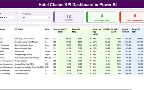 - Purpose: The KPI Definition sheet tab provides detailed explanations of each KPI.