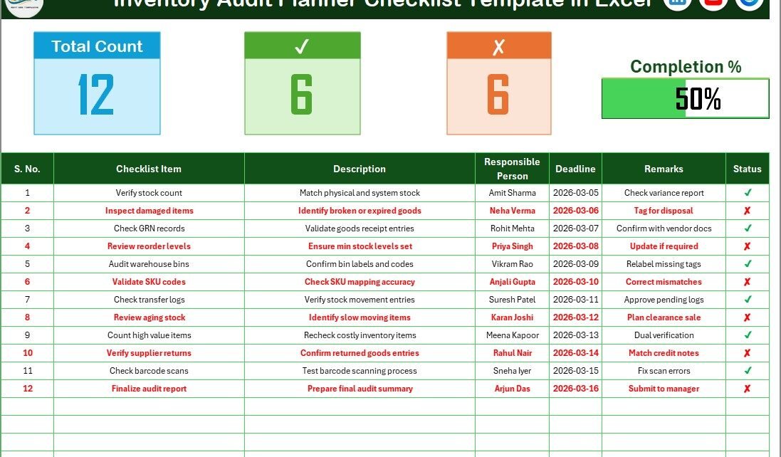 📊 What Is an Inventory Audit Planner Checklist in Excel?