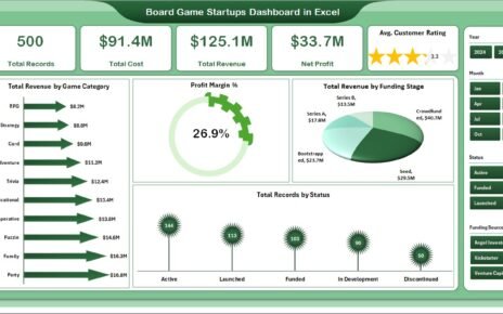 Board Game Startups Dashboard in Excel is a professionally designed, interactive analytics template built specifically for board game entrepreneurs, tabletop