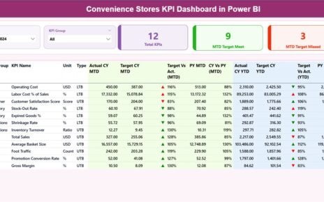 - MTD Target Missed Count: Displays how many KPIs missed their MTD targets.