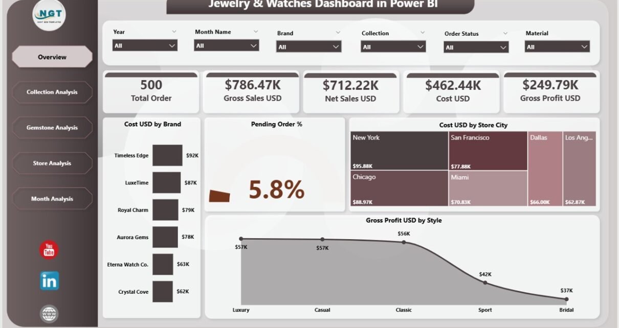 Key Features of the Jewellery & Watches Dashboard in Power BI