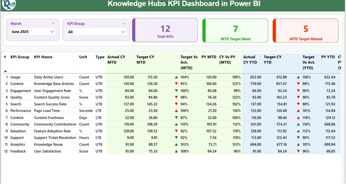 This is exactly where the Knowledge Hubs KPI Dashboard in Power BI becomes extremely valuable.