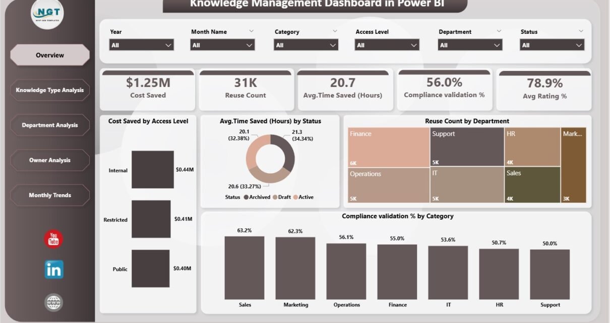 That is exactly why a Knowledge Management Dashboard in Power BI becomes a powerful and practical solution. This dashboard converts knowledge-related data into clear, visual, and actionable insights. Moreover, it helps leadership understand how knowledge contributes to productivity, compliance, and cost savings.