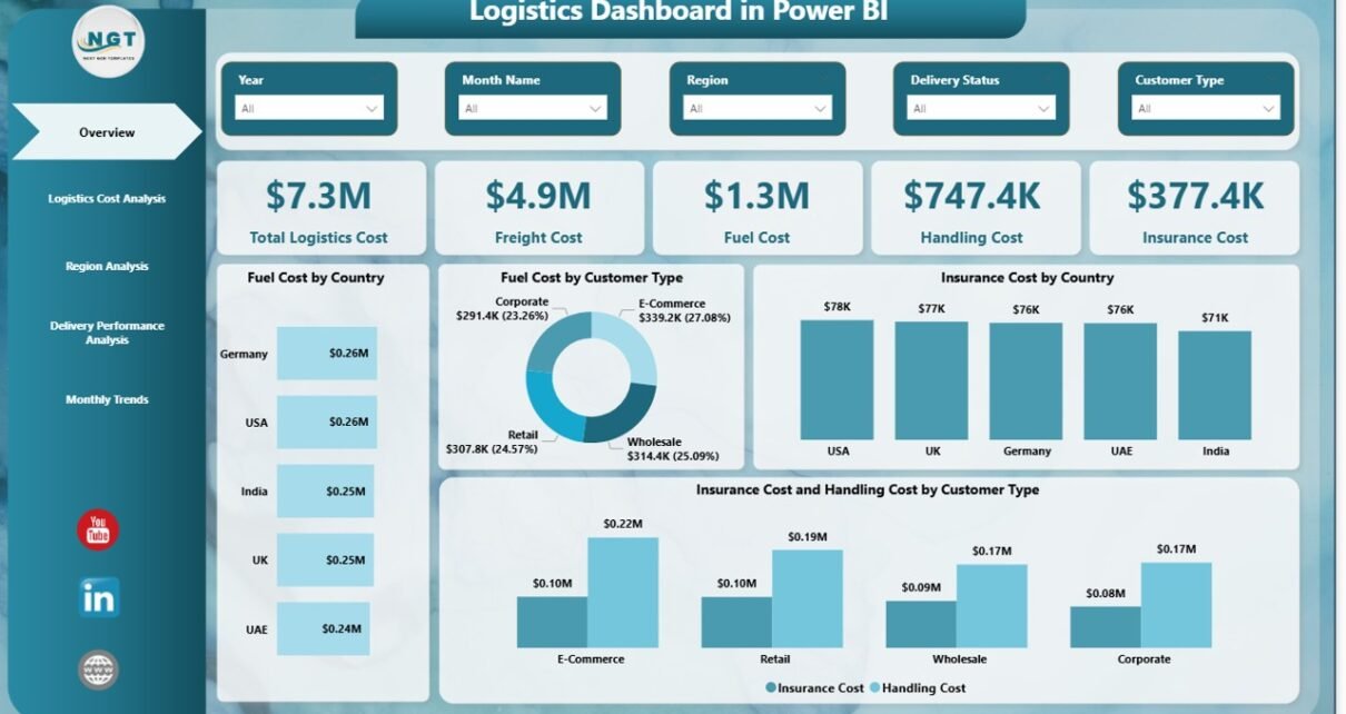 A Logistics Dashboard in Power BI transforms logistics management from reactive reporting into proactive decision-making. Instead of analyzing scattered spreadsheets, organizations gain a centralized, real-time view of logistics costs and delivery performance.