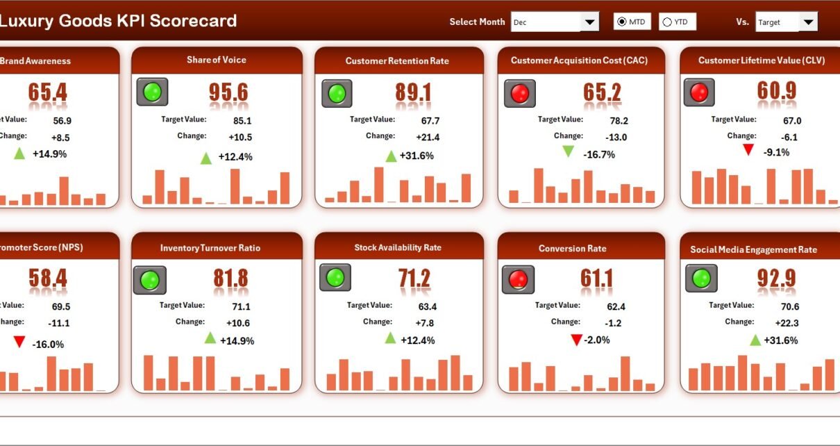 The Luxury Goods KPI Scorecard acts as your digital performance mirror.