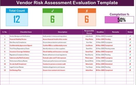 Vendor Risk Assessment Evaluation Checklist in Excel