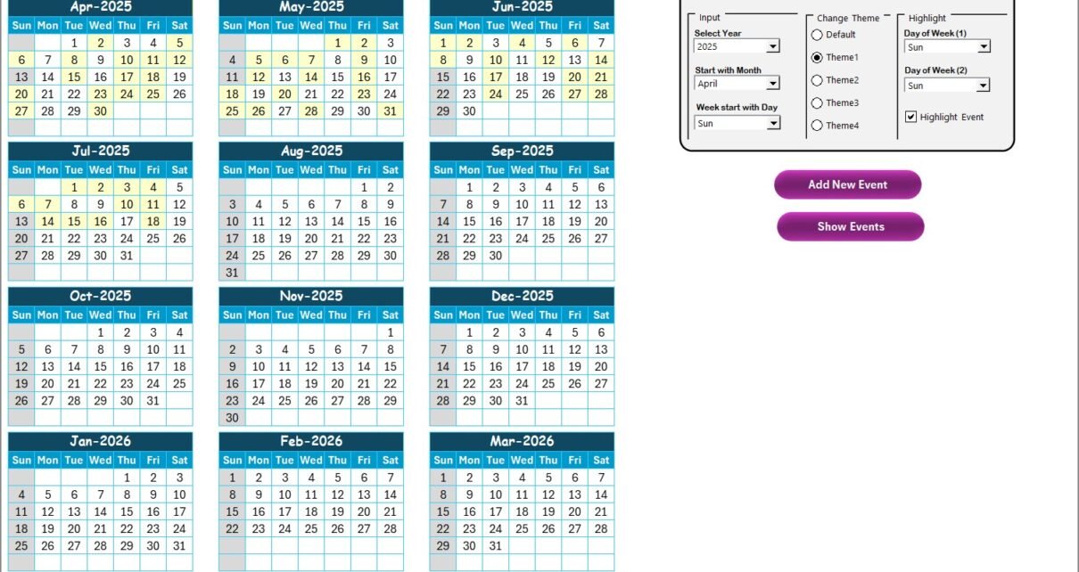 Let us explore each worksheet in detail to understand how the calendar works.