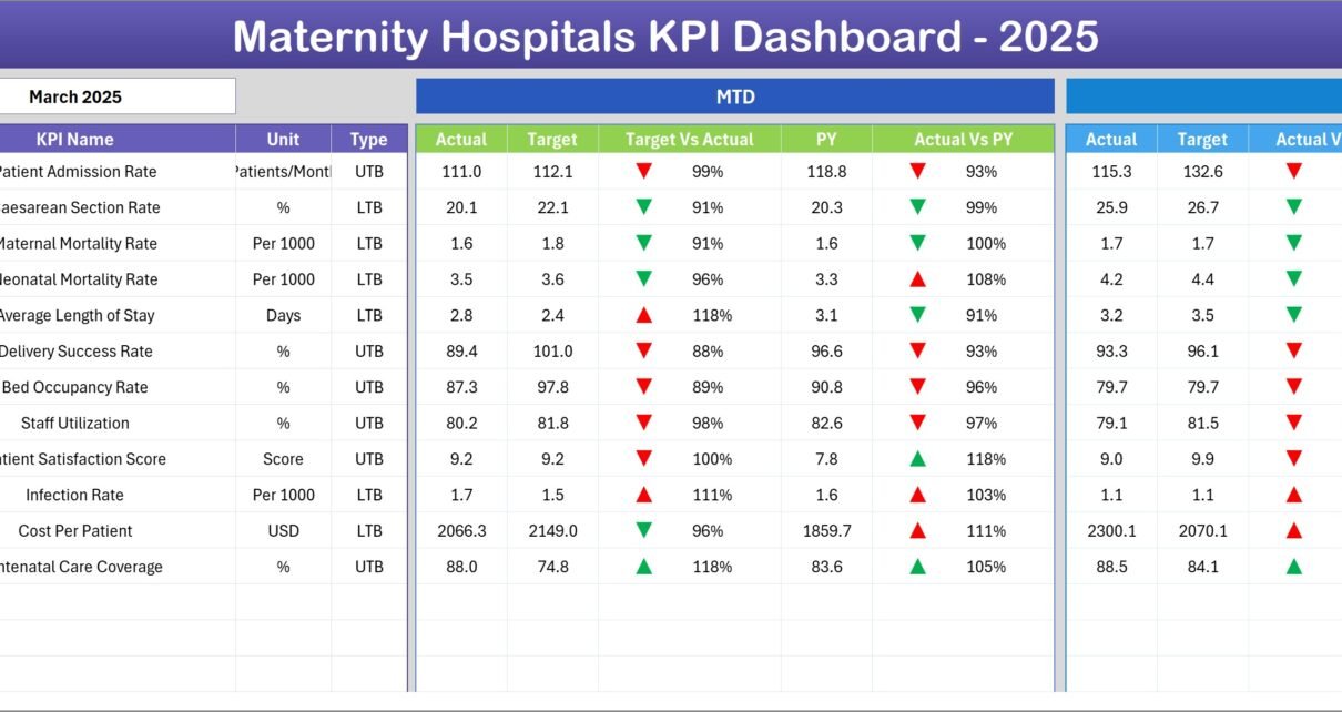 Therefore, hospitals increasingly use Key Performance Indicator (KPI) dashboards to monitor and analyze performance. One of the most effective tools for this purpose is the Maternity Hospitals KPI Dashboard in Excel.