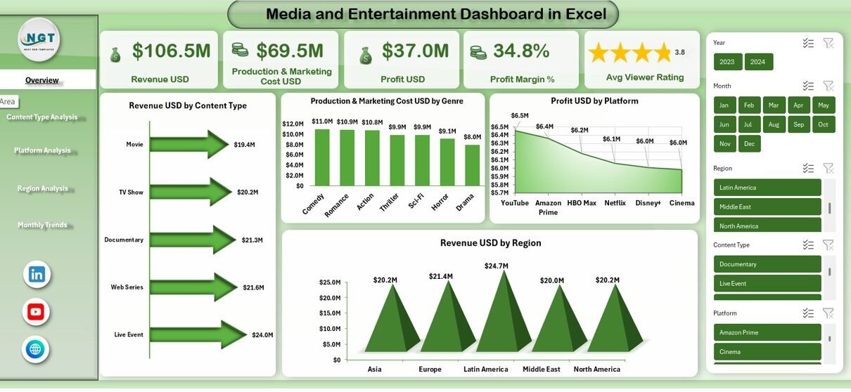 That is exactly why a Media and Entertainment Dashboard in Excel becomes a game-changer.
