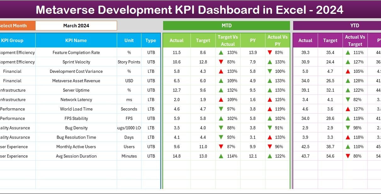 What Is a Metaverse Development KPI Dashboard in Excel?