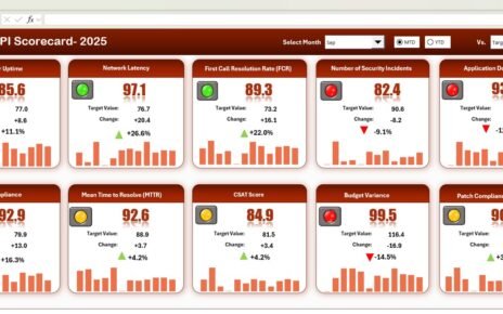 The scorecard makes use of Excel’s built-in features like formulas, conditional formatting, and charts to display KPIs in an easy-to-understand format. Whether you’re analyzing production yield, downtime, or safety incidents, this scorecard provides real-time insights for better decision-making.