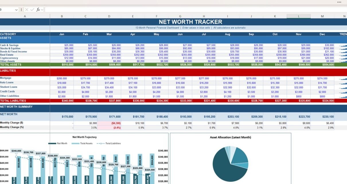 The Net Worth Tracker in Excel solves this challenge by providing a structured and automated financial dashboard.