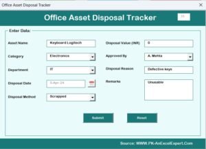 Office Asset Disposal Tracker in Excel 5