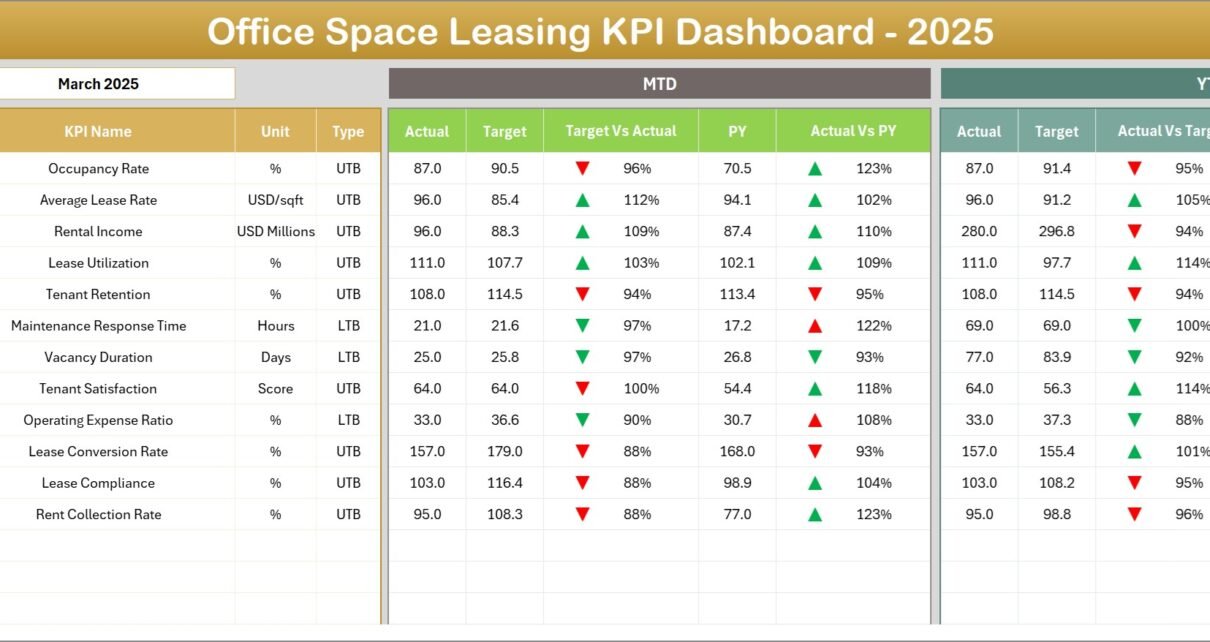 The Office Space Leasing KPI Dashboard in Excel provides a powerful yet simple solution for tracking leasing performance.