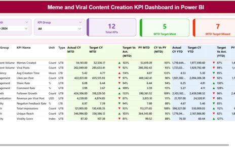 • MTD (Month-to-Date) and YTD (Year-to-Date) tracking for each KPI.