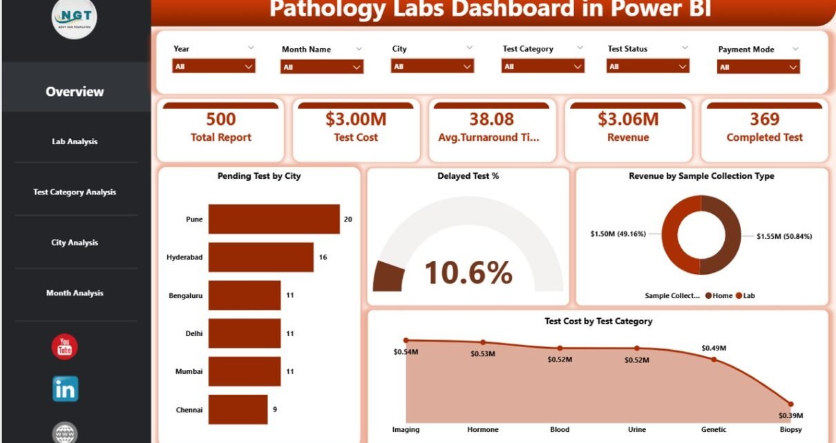 A Pathology Labs Dashboard in Power BI is an interactive reporting and analytics solution that helps pathology labs track operational, clinical, and financial performance using visual KPIs.