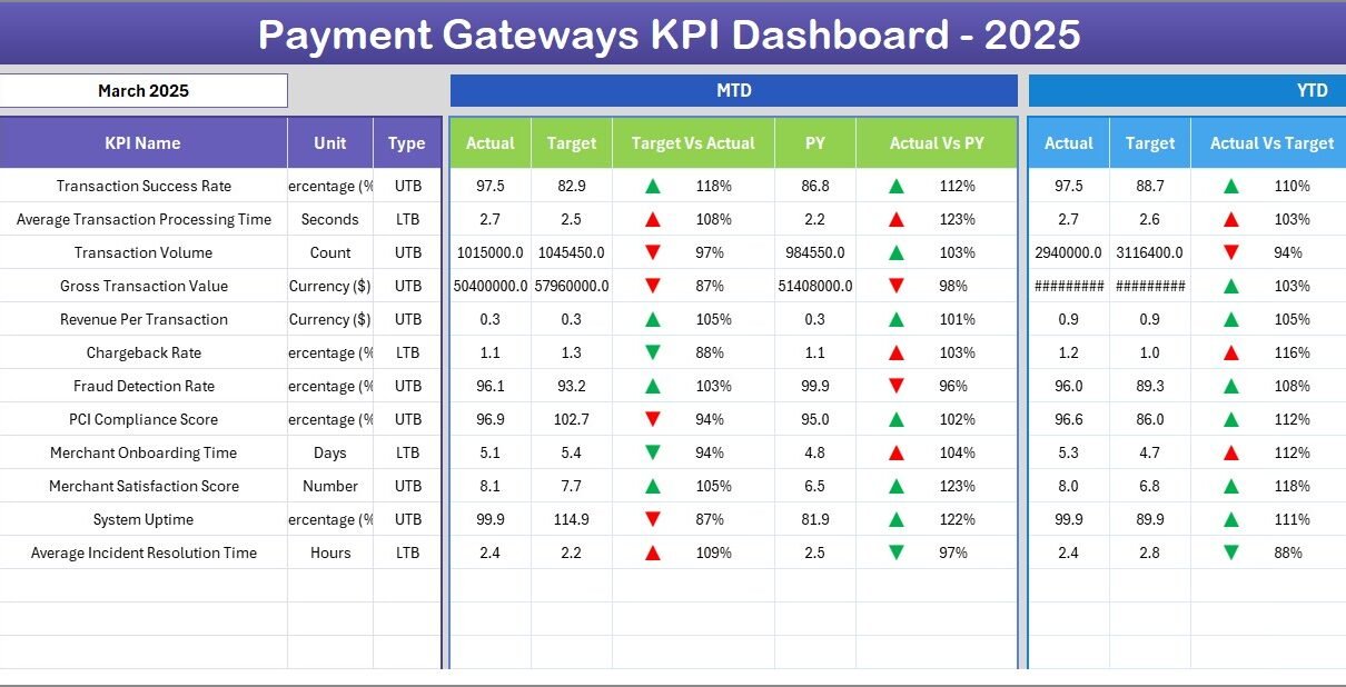 Payment Gateways KPI Dashboard in Excel
