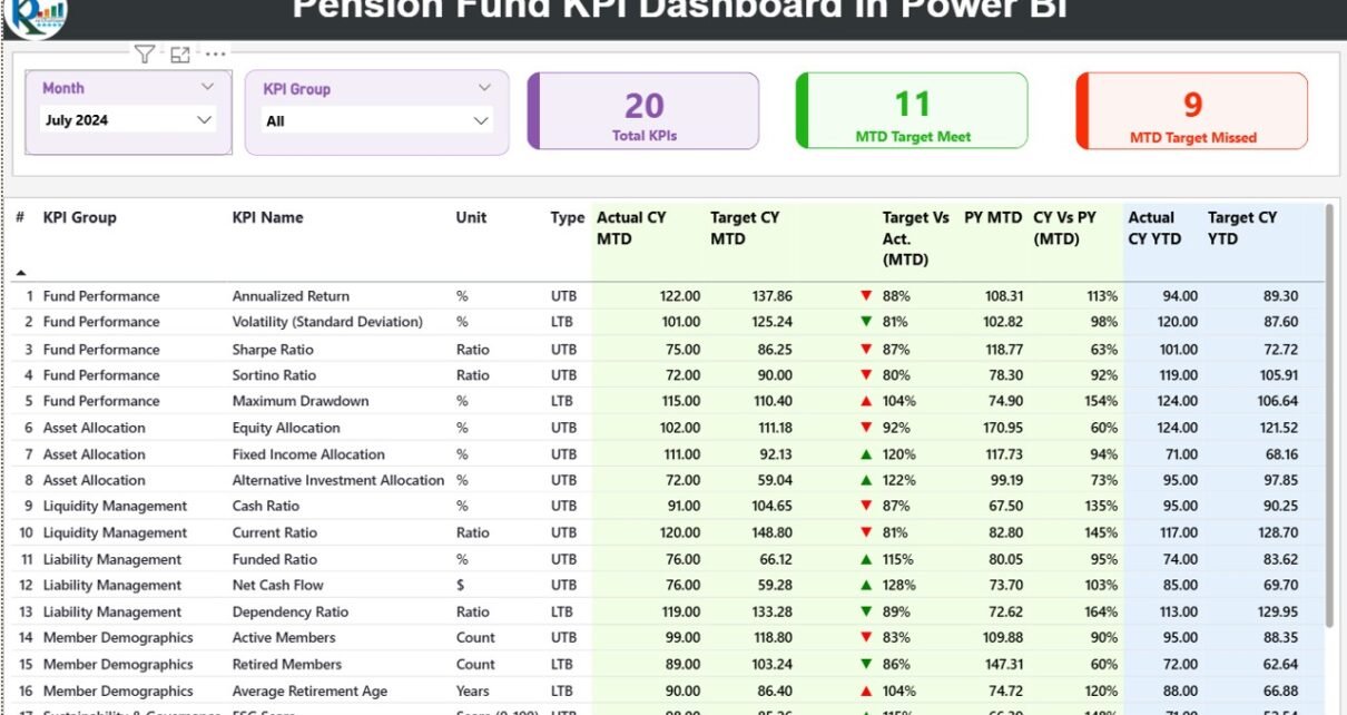 A Pension Fund KPI Dashboard in Power BI helps organizations: