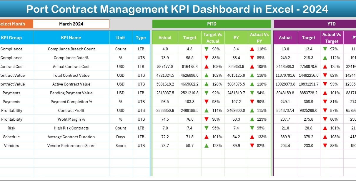 What Is a Port Contract Management KPI Dashboard in Excel?
