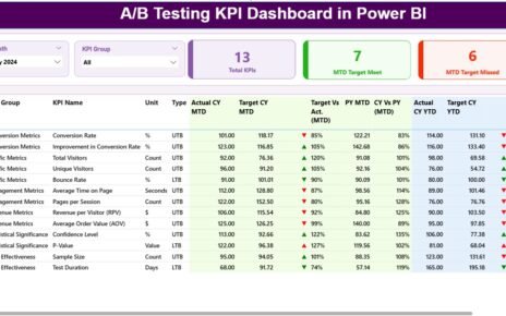 This ready-to-use Power BI dashboard is designed with clarity and usability in mind. It uses Excel as the backend data source and Power BI for visualization.