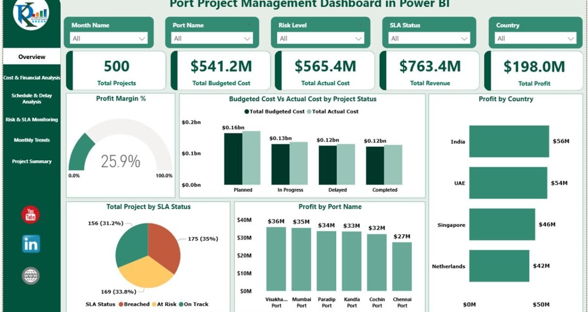 Managing port projects involves large budgets, multiple stakeholders, strict timelines, and high operational risks. Without a centralized reporting system, tracking project cost, progress, profit, and delays becomes extremely difficult. That is why organizations increasingly rely on a Port Project Management Dashboard in Power BI.