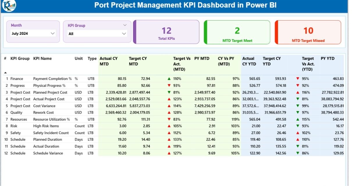 What Is a Port Project Management KPI Dashboard in Power BI?