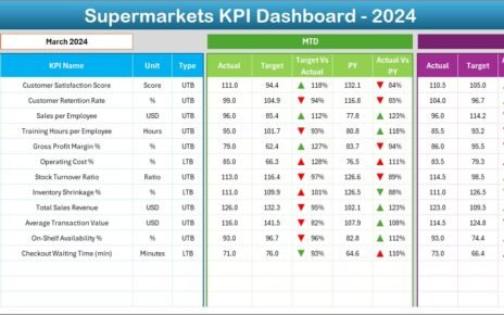 • Improve Visual Indicators: Adding more visual indicators or alerts for KPIs that fall below a certain threshold could enhance the dashboard’s usability. For instance, a color-coded system can help you quickly identify areas that need immediate attention.