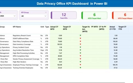 - Month and KPI Group Slicer: These filters allow users to select specific months and KPI groups to display relevant data.