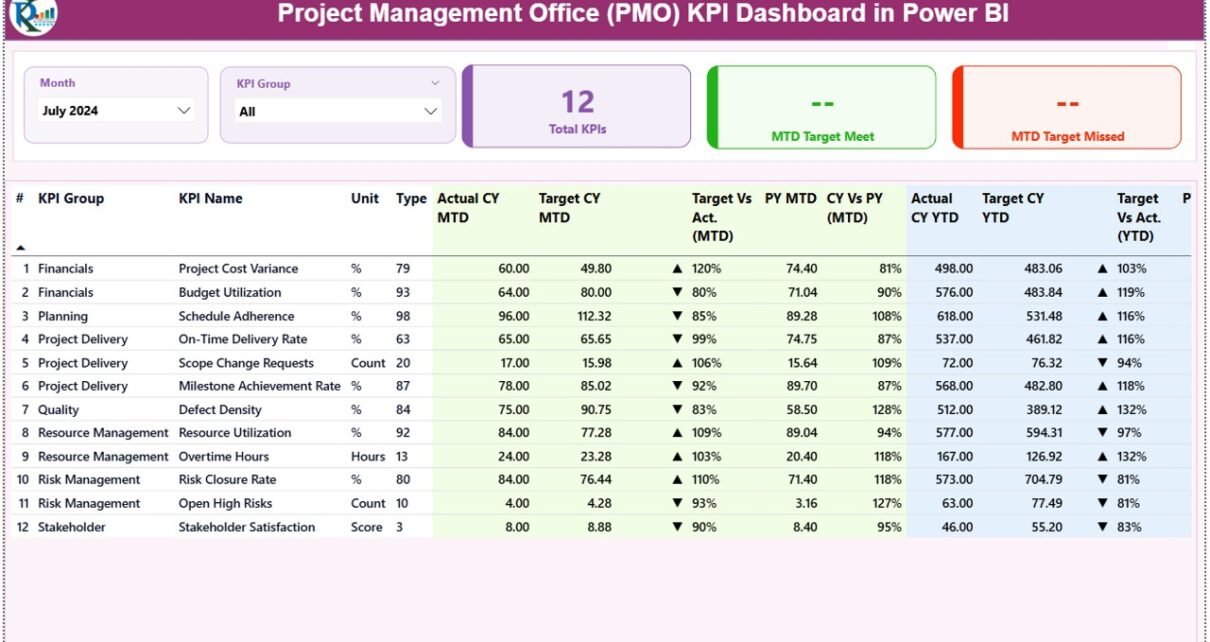 In this article, we will explore the features, benefits, best practices, and usage of a PMO KPI Dashboard in Power BI.