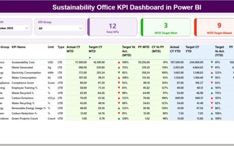 This ready-to-use dashboard uses Excel as a data source and Power BI Desktop for visualization. Because Excel remains familiar and flexible, data entry becomes simple. Meanwhile, Power BI handles calculations, visuals, and interactivity.