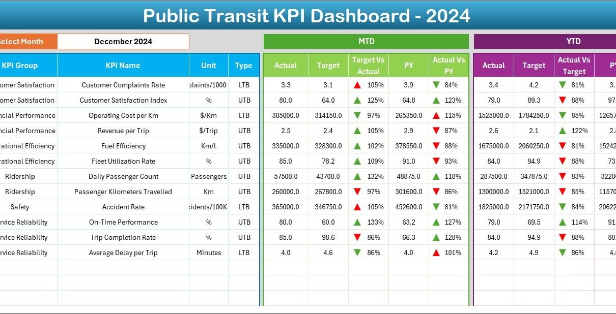 🧭 What Is a Public Transit KPI Dashboard in Excel?