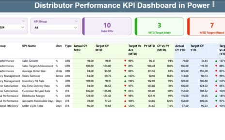 The dashboard connects to an Excel data source and converts raw numbers into meaningful insights. As a result, decision-makers understand their performance quickly. The design is simple, interactive, and suitable even for non-technical users.