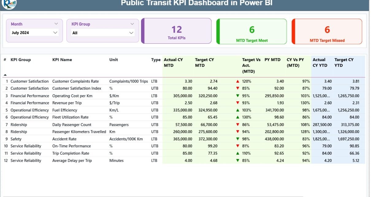 Advantages of Using a Public Transit KPI Dashboard in Power BI