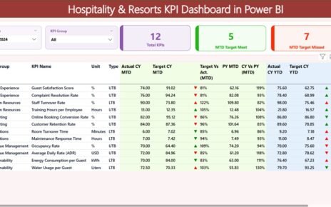 The dashboard includes seven structured worksheets, each designed to help you manage and analyze KPIs effectively. Below is a complete explanation of each sheet.