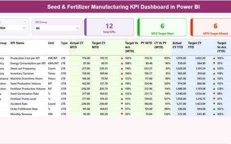 - Displays Actual, Target, and Prior Year data side by side for each KPI.