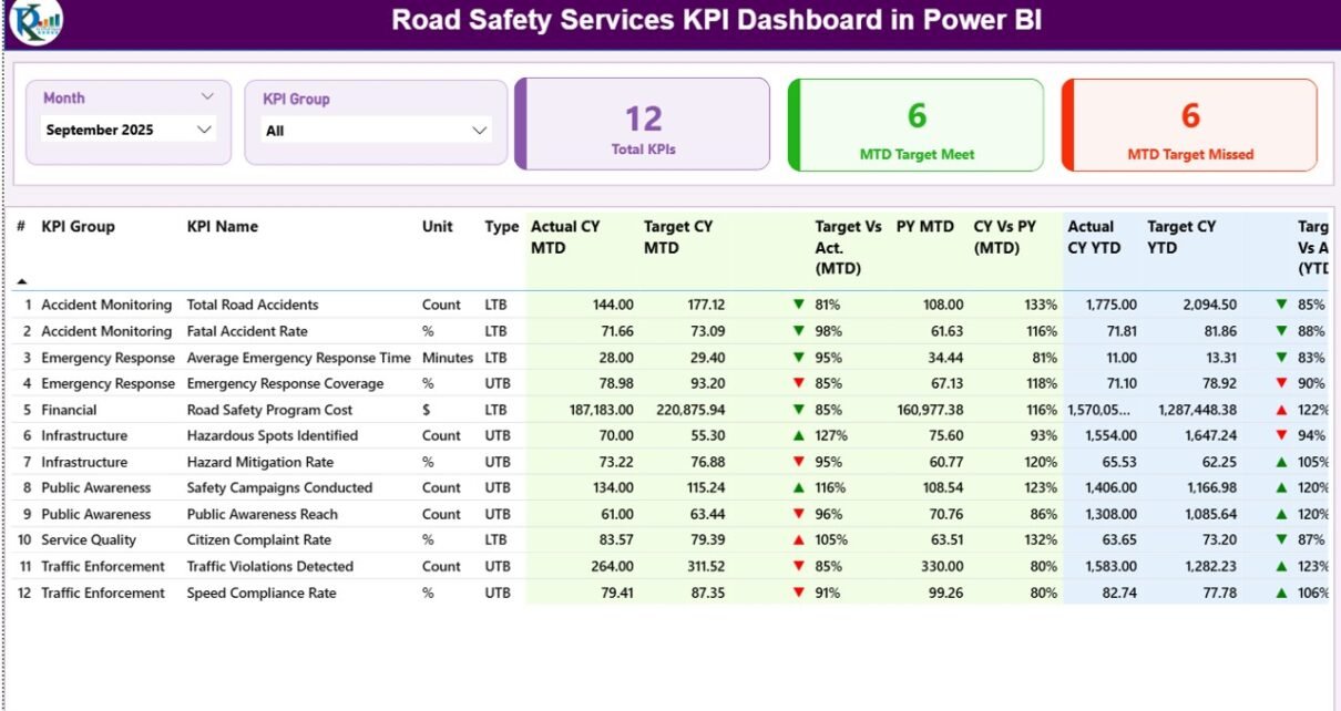 What Is a Road Safety Services KPI Dashboard in Power BI?