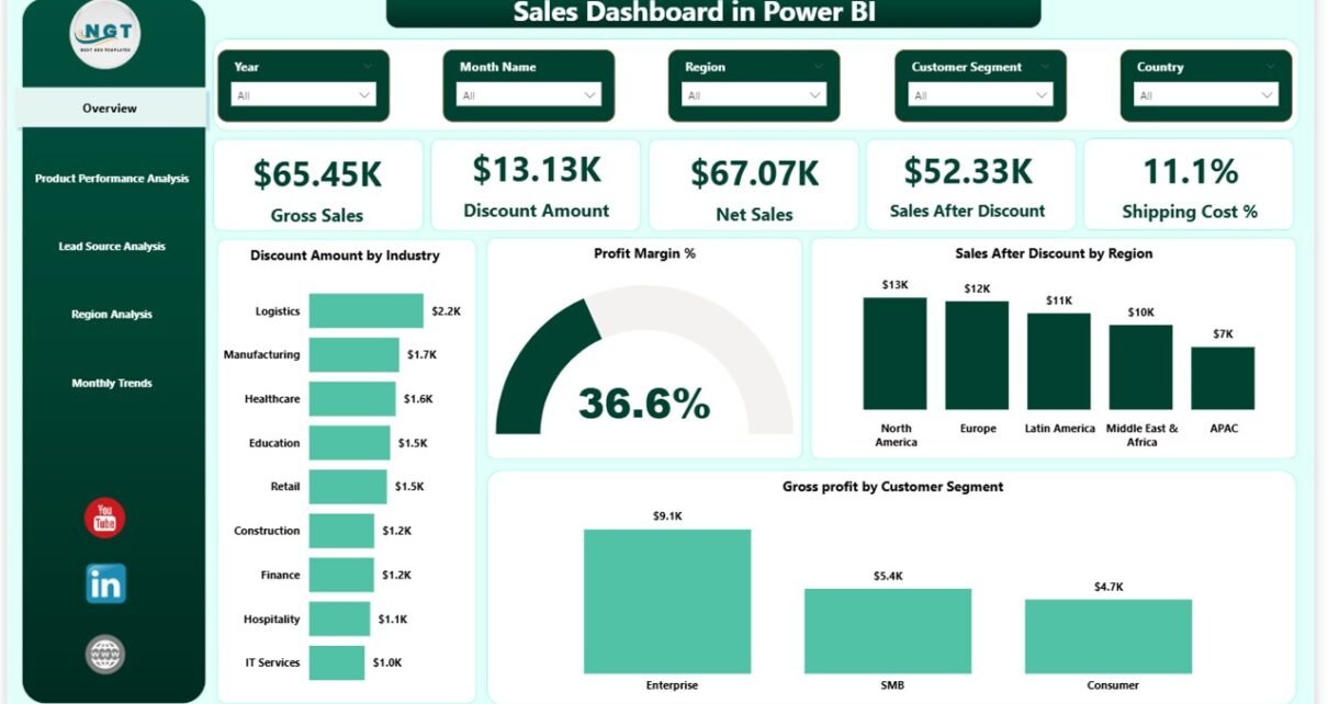 In today’s competitive business world, sales teams must make fast and smart decisions. However, many companies still rely on spreadsheets and manual reports. As a result, leaders struggle to track revenue, discounts, margins, and performance trends clearly.So, how can you gain complete visibility into your sales performance?You need a Sales Dashboard in Power BI.A well-designed sales dashboard transforms raw sales data into interactive insights. Moreover, it helps you monitor Gross Sales, Net Sales, Profit Margin, Discount Impact, Shipping Cost, and Regional Performance in one centralized report. Therefore, you can identify opportunities quickly and improve profitability.
