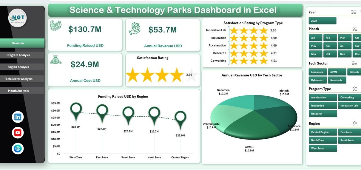 A Science & Technology Parks Dashboard in Excel simplifies complex data, improves visibility, and supports smarter decisions. By organizing performance metrics across programs, regions, tech sectors, and months, this dashboard turns raw data into actionable insights.