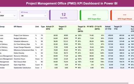 In today’s fast-paced business environment, monitoring project performance is critical for organizational success. A Project Management Office (PMO) KPI Dashboard