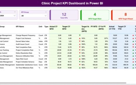 • Month and KPI Group Slicer – Allows users to filter KPIs by month and group.