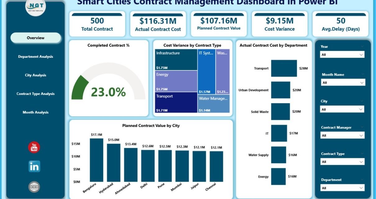 A Smart Cities Contract Management Dashboard in Power BI offers multiple strategic advantages.