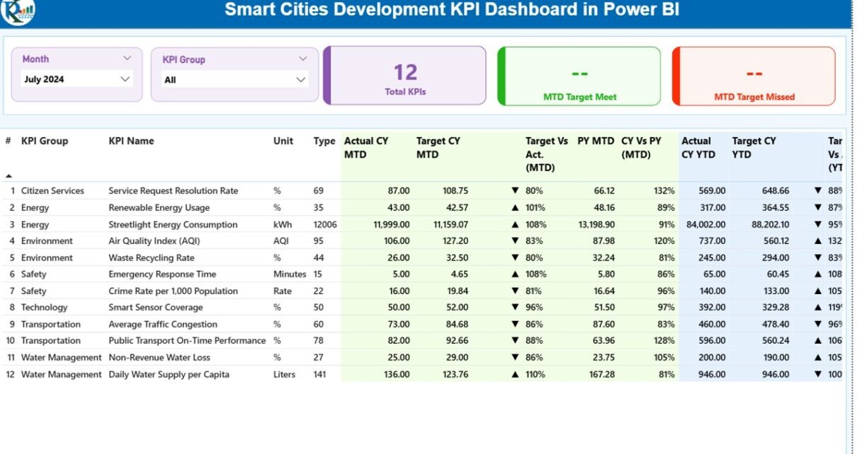 What Is a Smart Cities Development KPI Dashboard in Power BI?